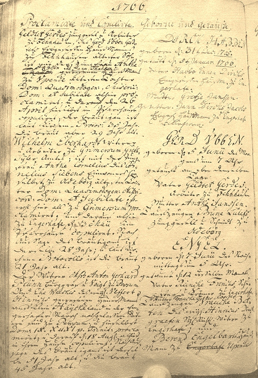 Rechts:Heiratseintrag von 1766 aus Engerhafe